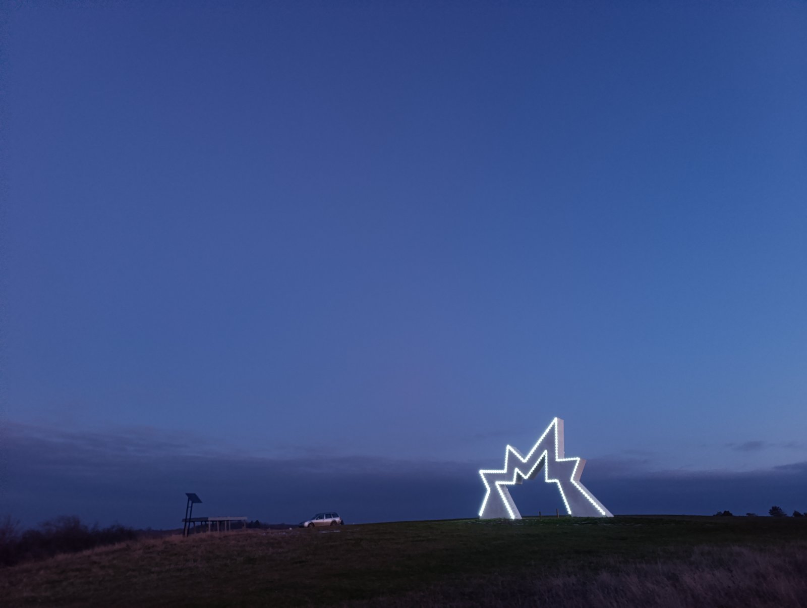 Skulptura ZAMISLI ŽELJU, metal, 850x550x110cm, 2024
